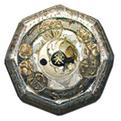 Fresh. Gin, elderflower liqueur, fresh lemon juice, sweetened with nectar and topped with champagne. Marked by a copper token.
