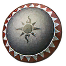 Sour. Bourbon, fresh lemon juice, simple syrup, garnished with an orange wheel, cherry, and a sun token.